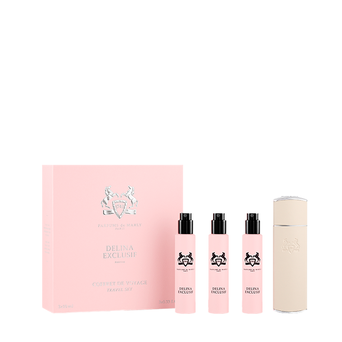 Набор Delina Exclusif Travel Set состоит из 3 миниатюр объемом 10 мл и футляра.