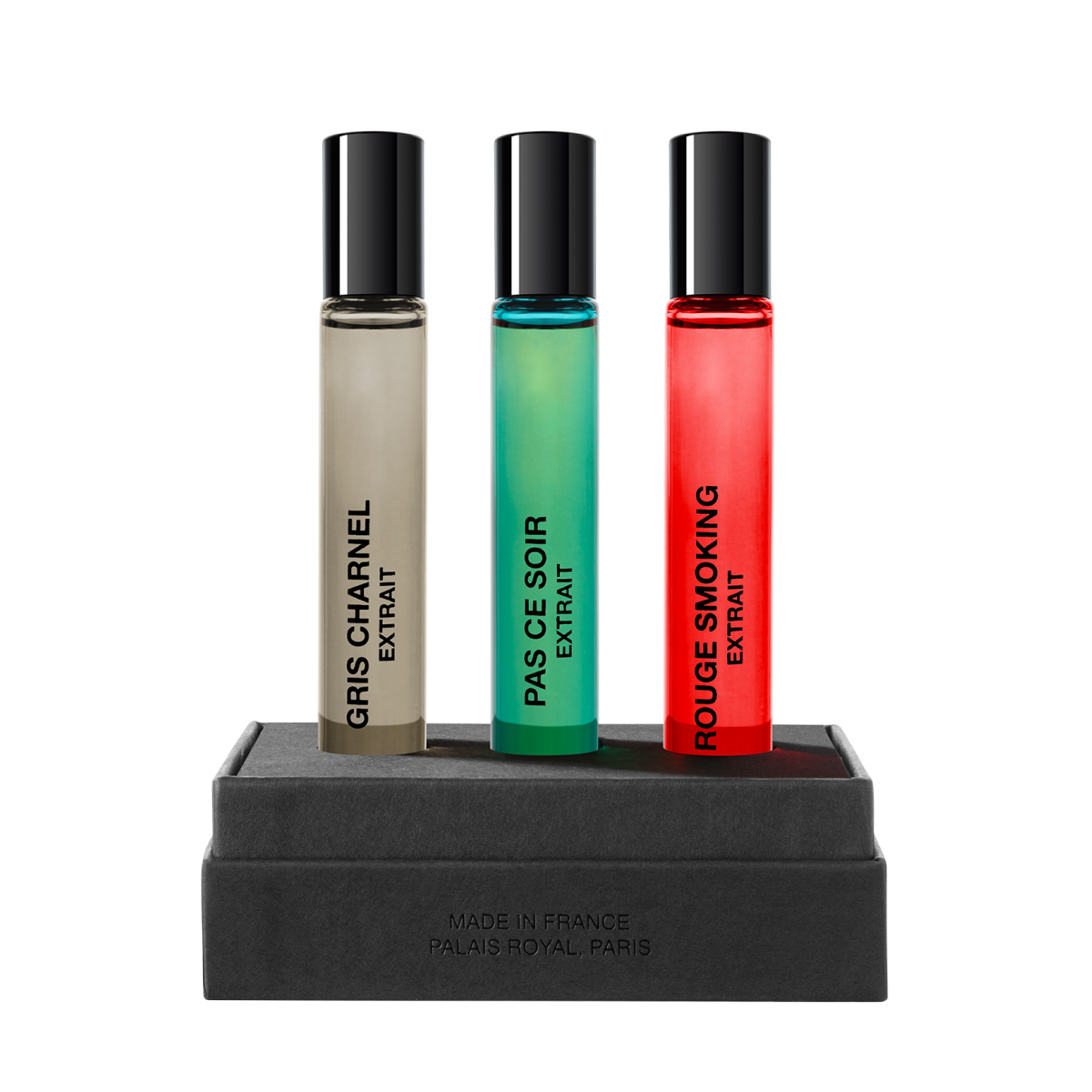 В коллекции миниатюр La Découverte Extraits собраны культовые ароматы BDK Parfums в концентрации 30% Extrait de Parfum. Три композиции будто говорят о Париже три главных слова: Gris Charnel – романтика, Rouge Smoking – кутюр, Pas ce Soir – интрига.